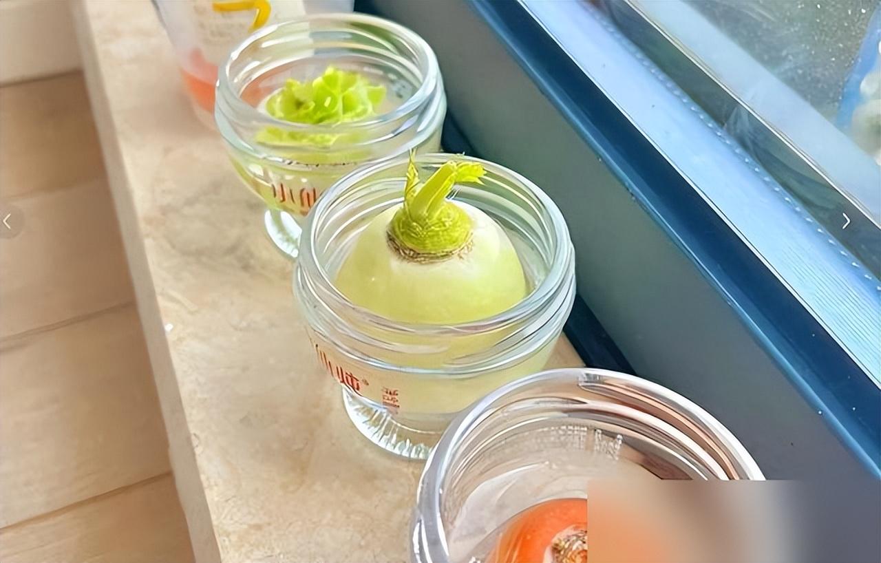 洋蔥墩子泡出銀絲根,紅薯塊漫出藤蔓簾,喝剩的奶茶杯養着土豆花——朋友來家直誇小森林佈景有品位,哪知道全是廚餘垃圾再就業。