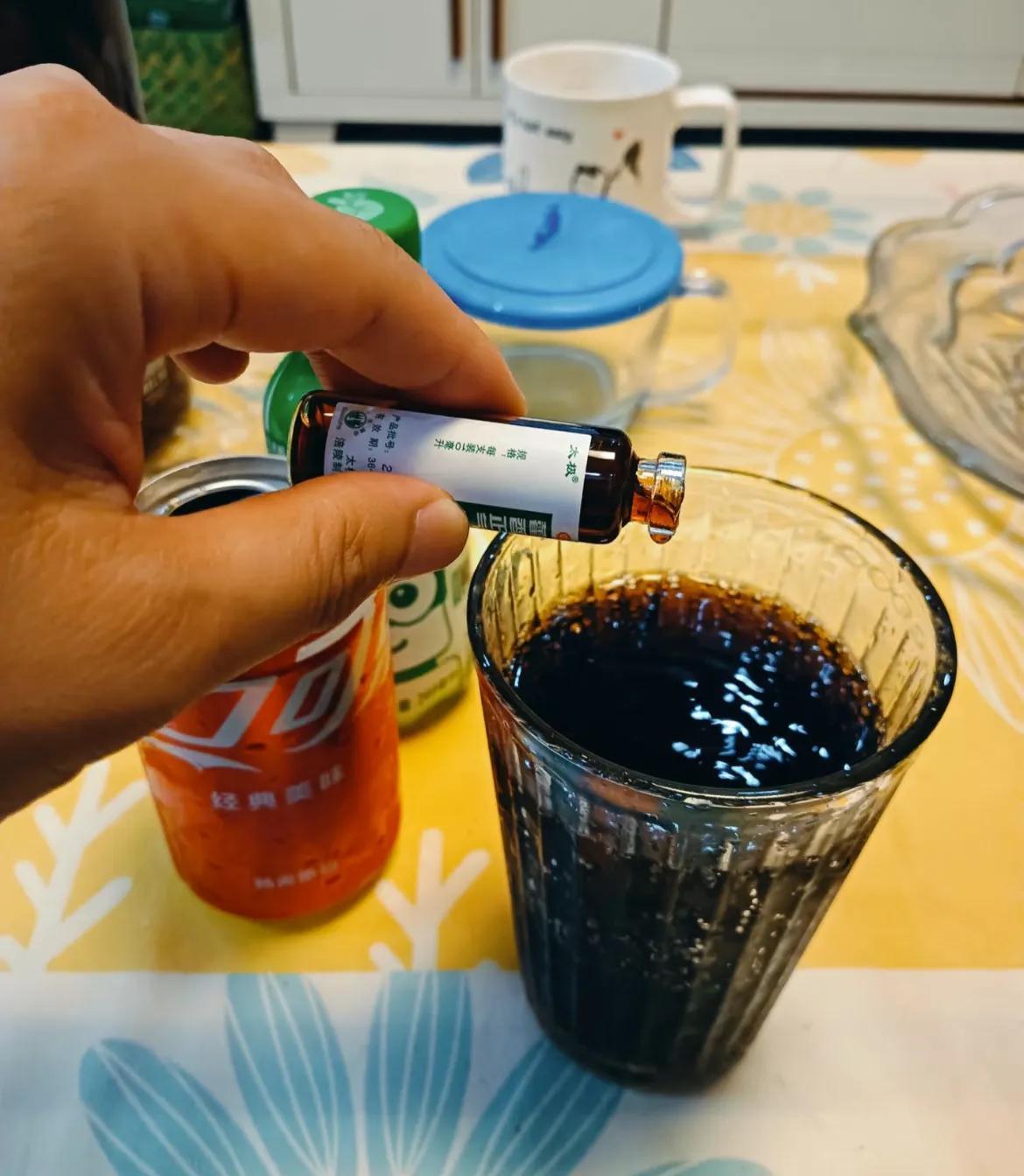 操作也簡單,每次坐車之前,拿一罐可樂,裏面加一支藿香正氣水,搖搖均勻;