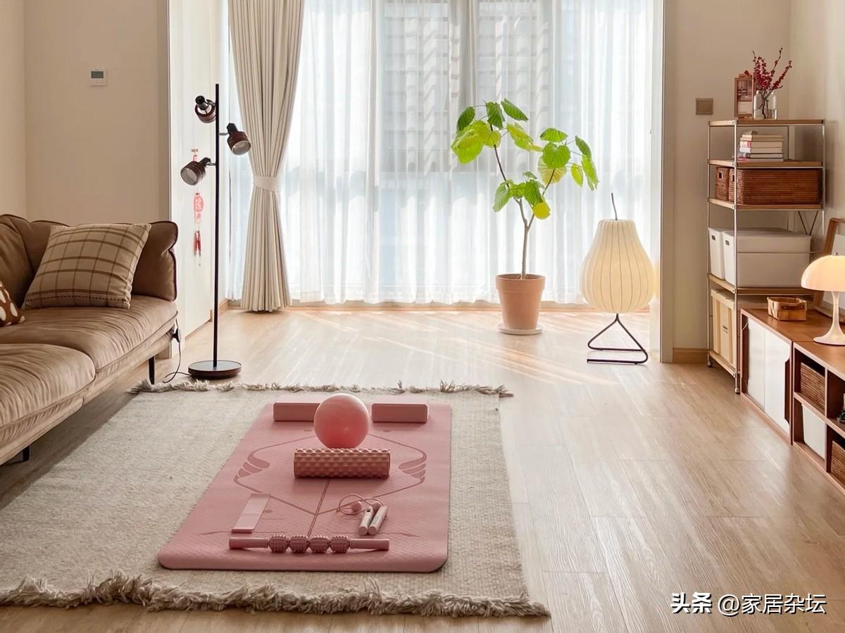 騰出來的中央區域,成了真正的活動的核心。鋪上地毯,是舒適的休閒角落。擺上健身墊,立刻變成了健身房。有了孩子,孩子也可以在上面玩玩具。即使來了朋友,隨意圍坐或者是坐在懶人沙發,氛圍輕鬆。