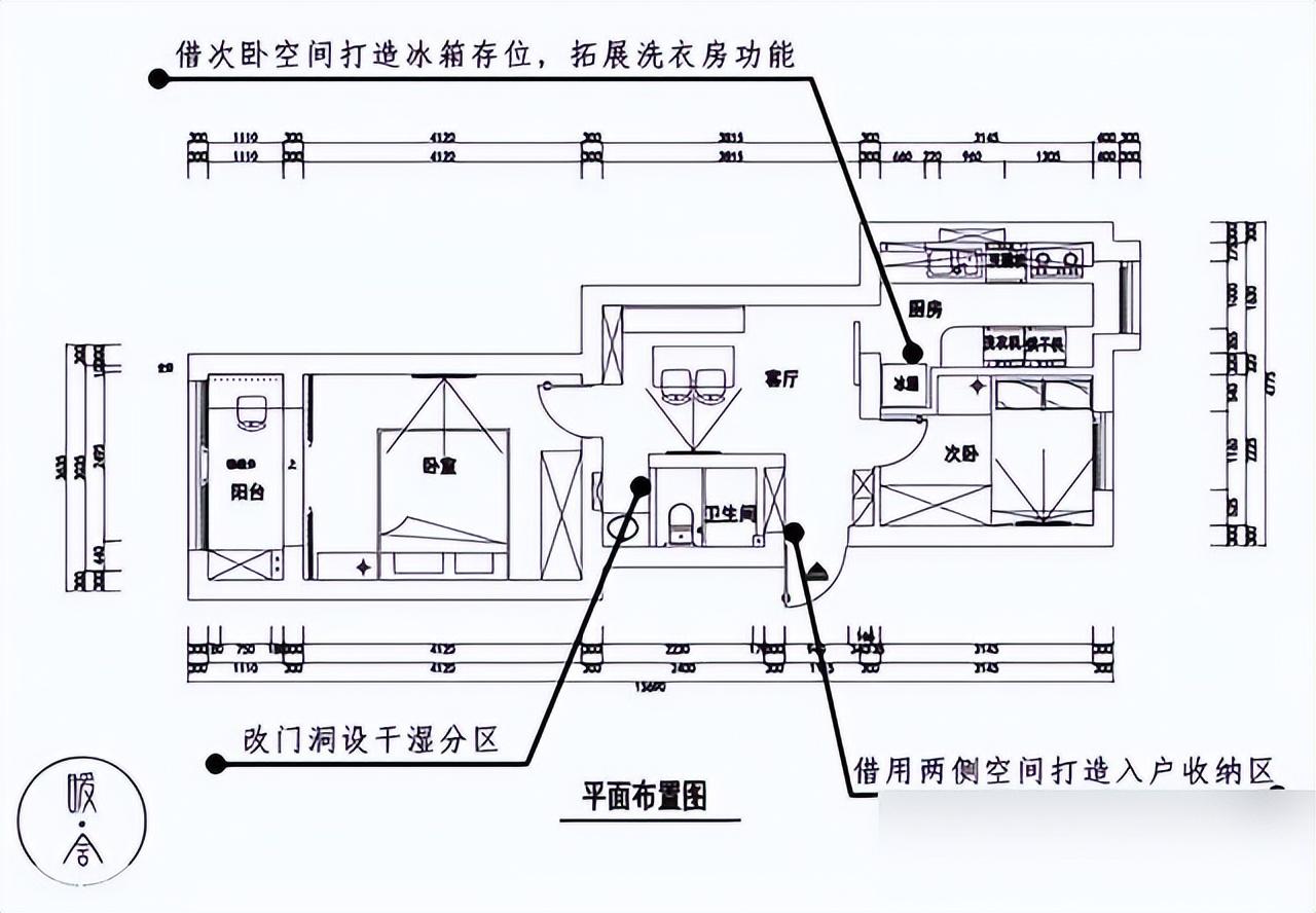 那個案例裏,繞着承重牆做洄游動線,廚房、衛生間走兩步就到,家務活省了一半力氣。
