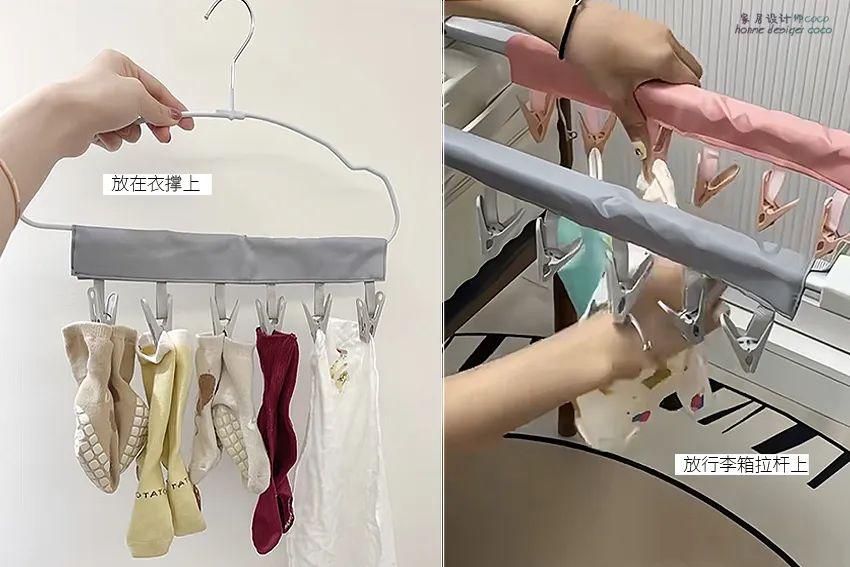它自帶6個小夾子,平常在家裏晾曬一些襪子、內衣也很節省空間。