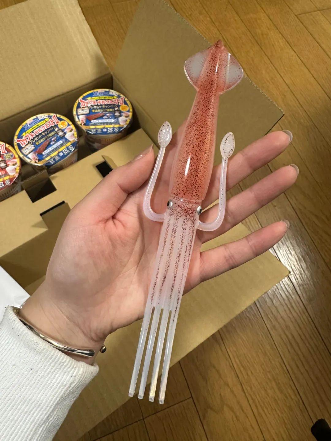 很多人爲了這個魷魚叉子,甚至要花100多買一箱泡麪。[簡直就是冤大頭]