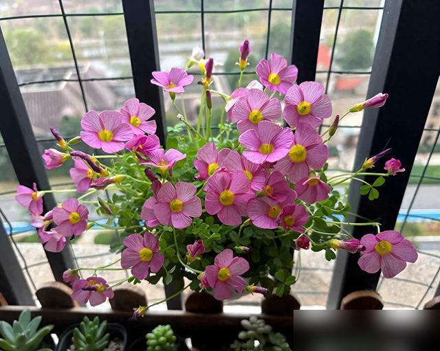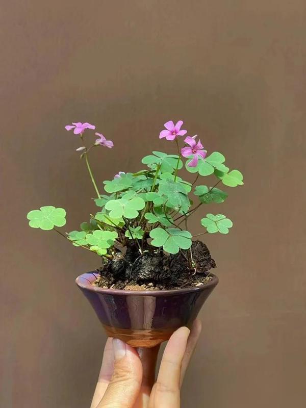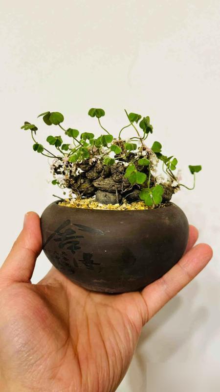 瞧這酢漿草老樁,往白牆根一蹲,配個竹編籃,侘寂風那味兒就出來了。