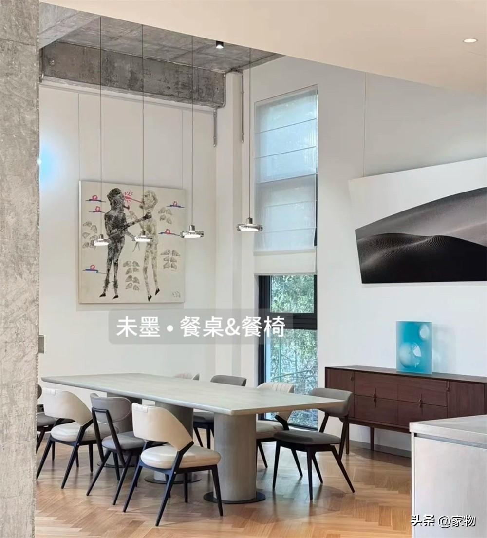 從餐桌到餐椅,再到餐廳吊燈和周圍佈置,全是吳彥祖親自設計,風格也從冷冽的水泥質感,過渡到了暖色柔和的氛圍中,讓用餐環境更舒心。