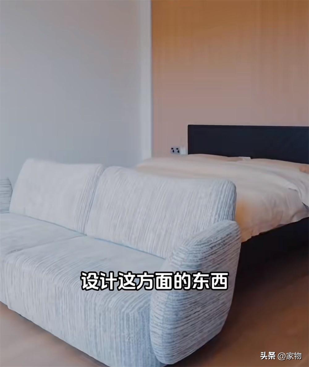 臥室有多間,裝修也延續了精簡的理念,雙人牀配牀尾沙發,再加兩組牀頭櫃,畢竟是300㎡疊墅,有專門的衣帽間,不必考慮衣櫃的位置,臥室會更顯寬敞。