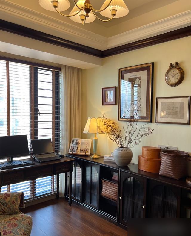 電視背景牆不硬塞儲物櫃,65寸電視配9釐米矮櫃,乾淨得像藝術裝置;兒童房淡藍牆漆配實木書桌,比定製城堡牀更抗造;臥室鬥櫃兼當梳妝檯,一盞壁燈代替浮誇主燈。