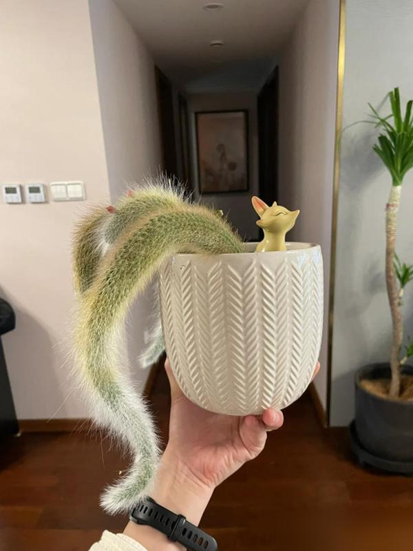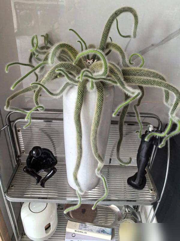 養了三年的寶貝,被同事一句話打成了“噁心”貨,換誰心裏都堵得慌。再細看那盆九尾狐多肉,毛茸茸的枝條垂下來,白毛油亮蓬鬆的,倒真像條狐狸尾巴,可稍不注意,打結髮黃了又活脫脫一窩蛇盤在那兒。難怪人家看了起雞皮疙瘩。這花叫猴尾柱,仙人掌科的品種,原產南美玻利維亞山地,養好了能竄到近兩米,尾巴似的擺在那兒,仙氣飄飄。可惜,審美這東西太個人化了,有人見了心頭髮毛,有人卻愛得不行,直喊“軟fufu的萌死人”。