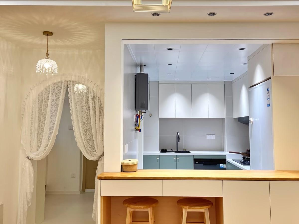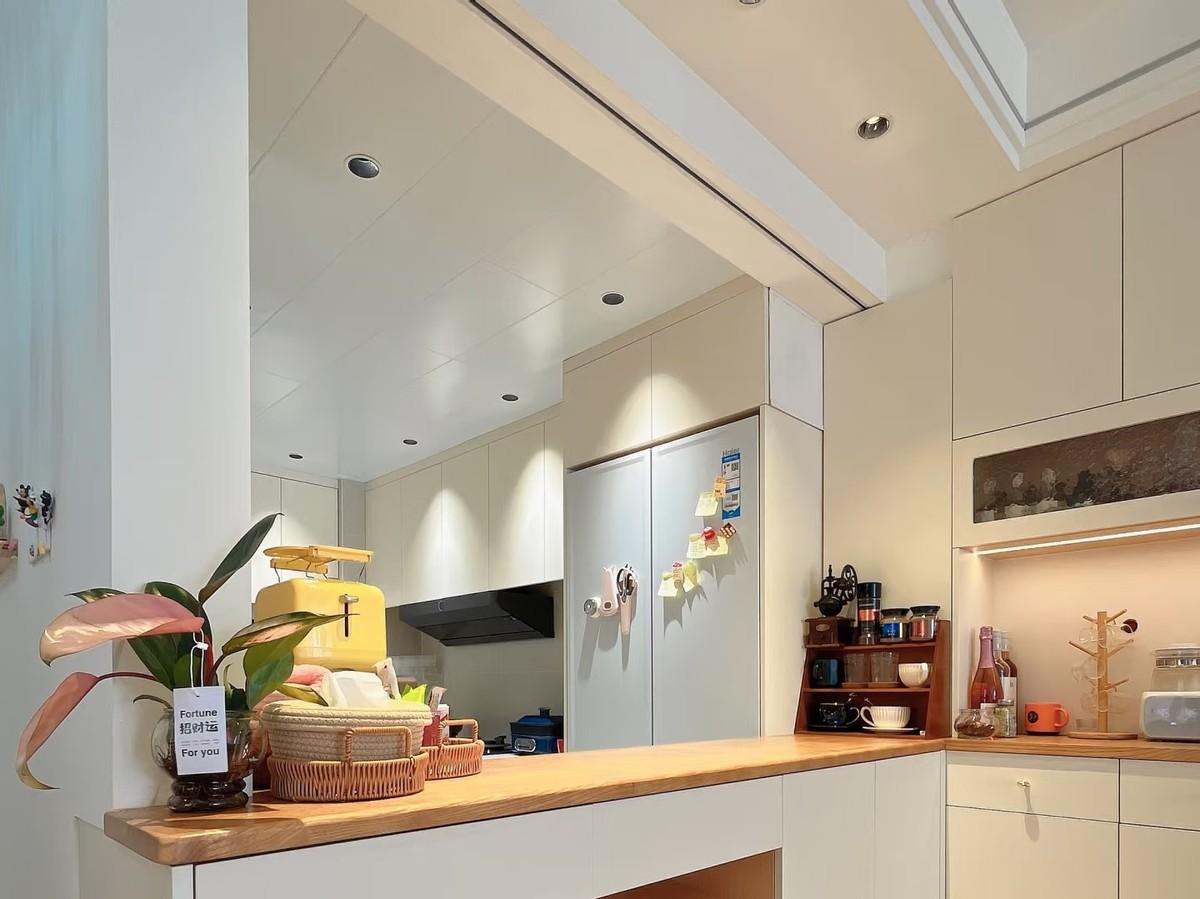 裝修完,我就立馬喜歡上我家這個廚房了,也喜歡了下廚房。在廚房裏,可以看到外面,還可以和坐在吧檯的人聊天,很實用。