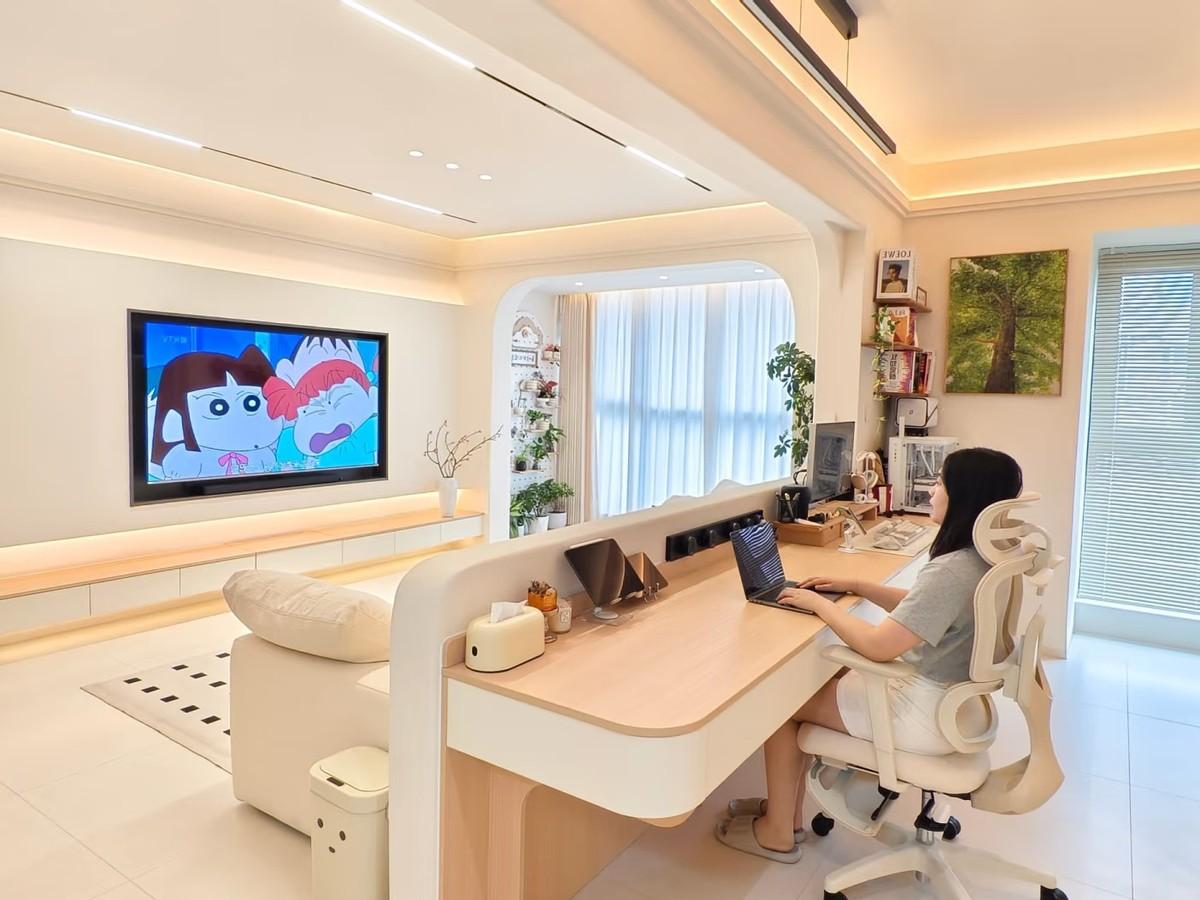 客廳和書房如果接近在一起,那麼建議大家看看一體化裝修,把二者打通,你會發現整個家都變得不一樣了。