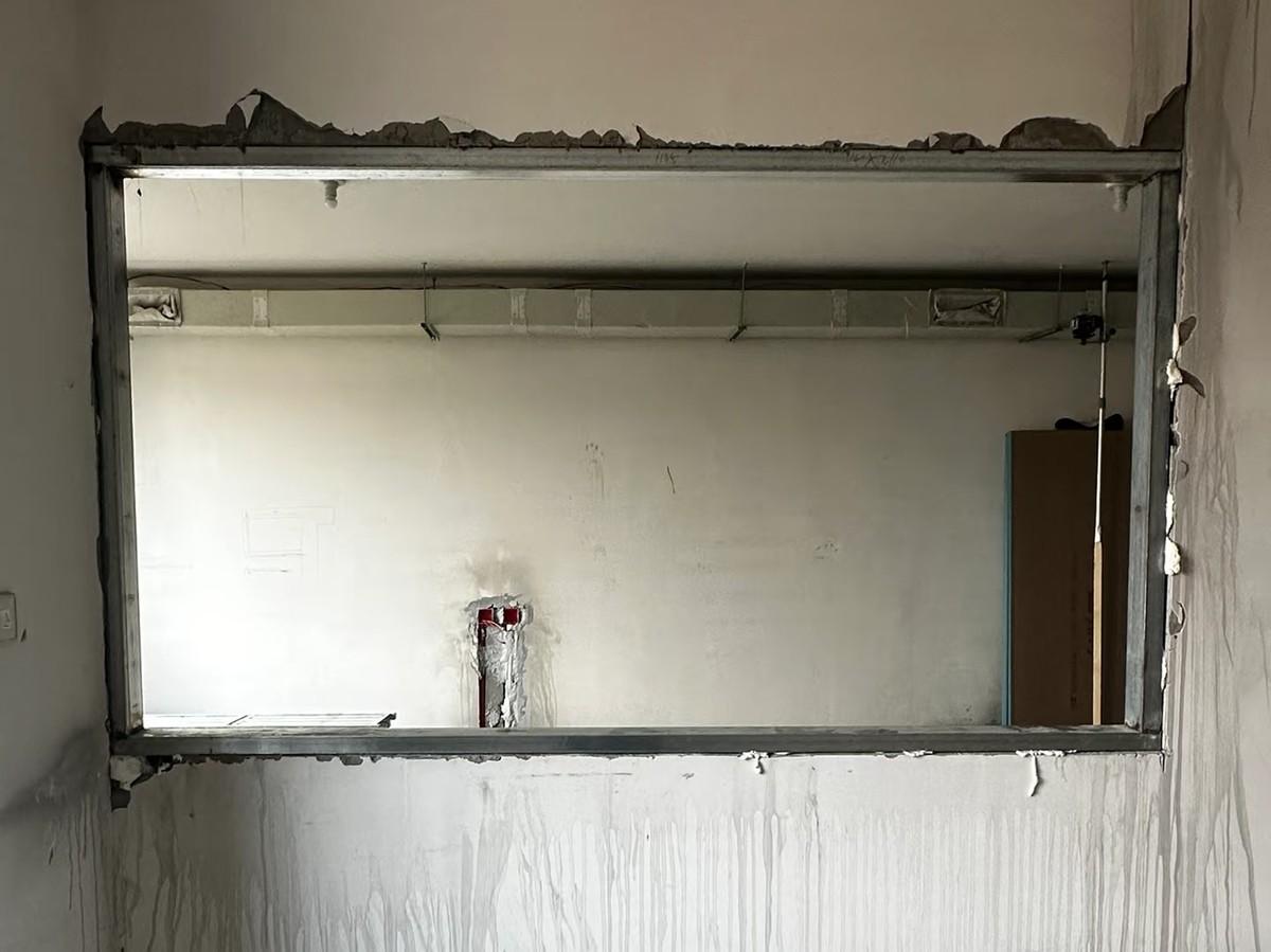 所以,這次裝修就果斷的在廚房側牆上開了一個窗口。這個窗口的尺寸還是比較大的,高度是從下面一米左右,一直到頂板,寬度也快達到了兩米多。