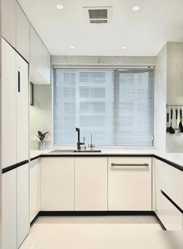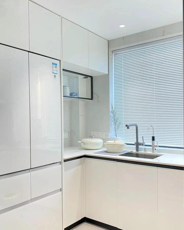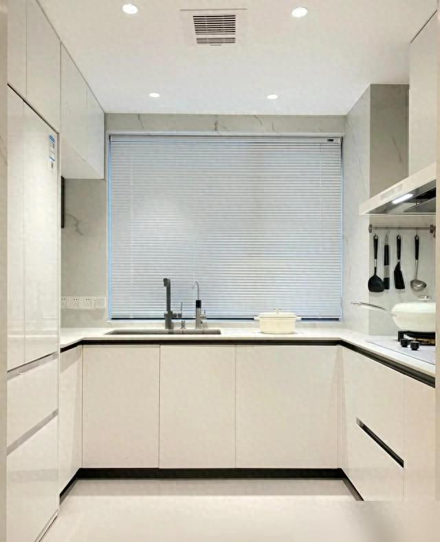 平板櫃門沒凸起拉手,圍裙帶子不勾掛,油煙抹布一推全乾淨。