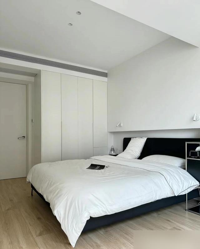臥室鋪木地板腳感軟乎,衣櫃一門到頂不積灰。