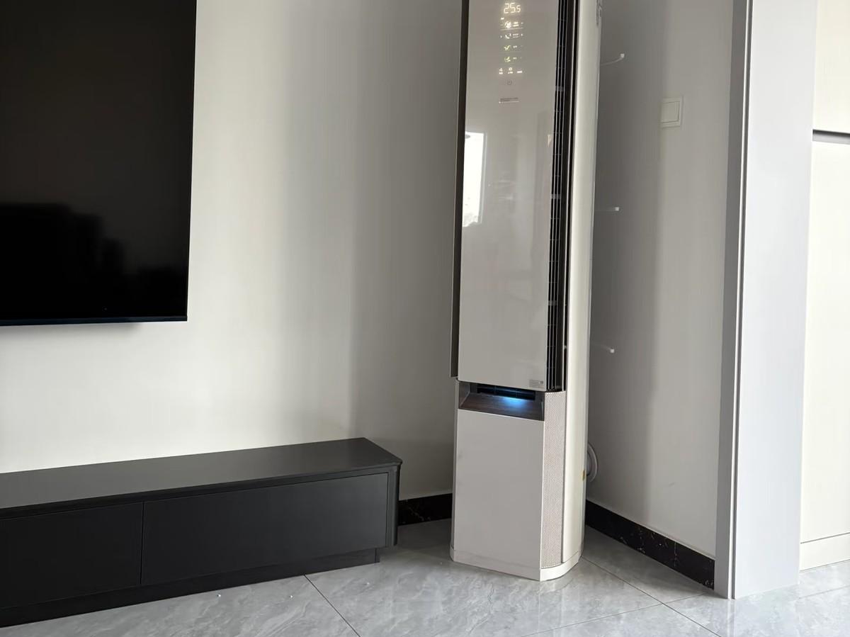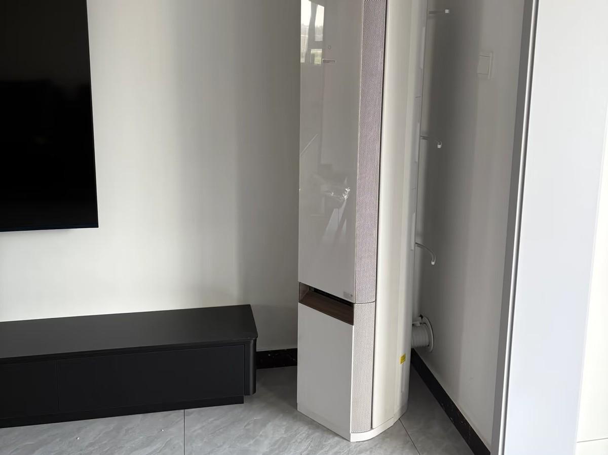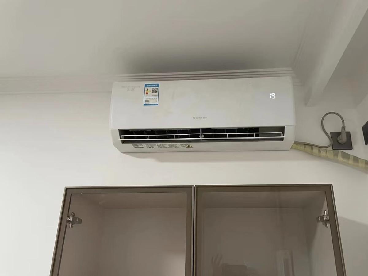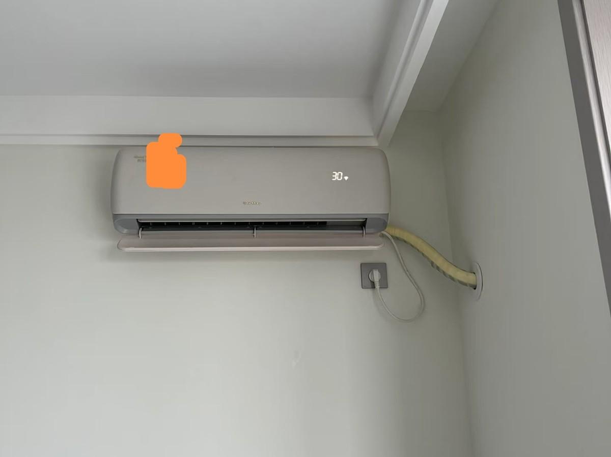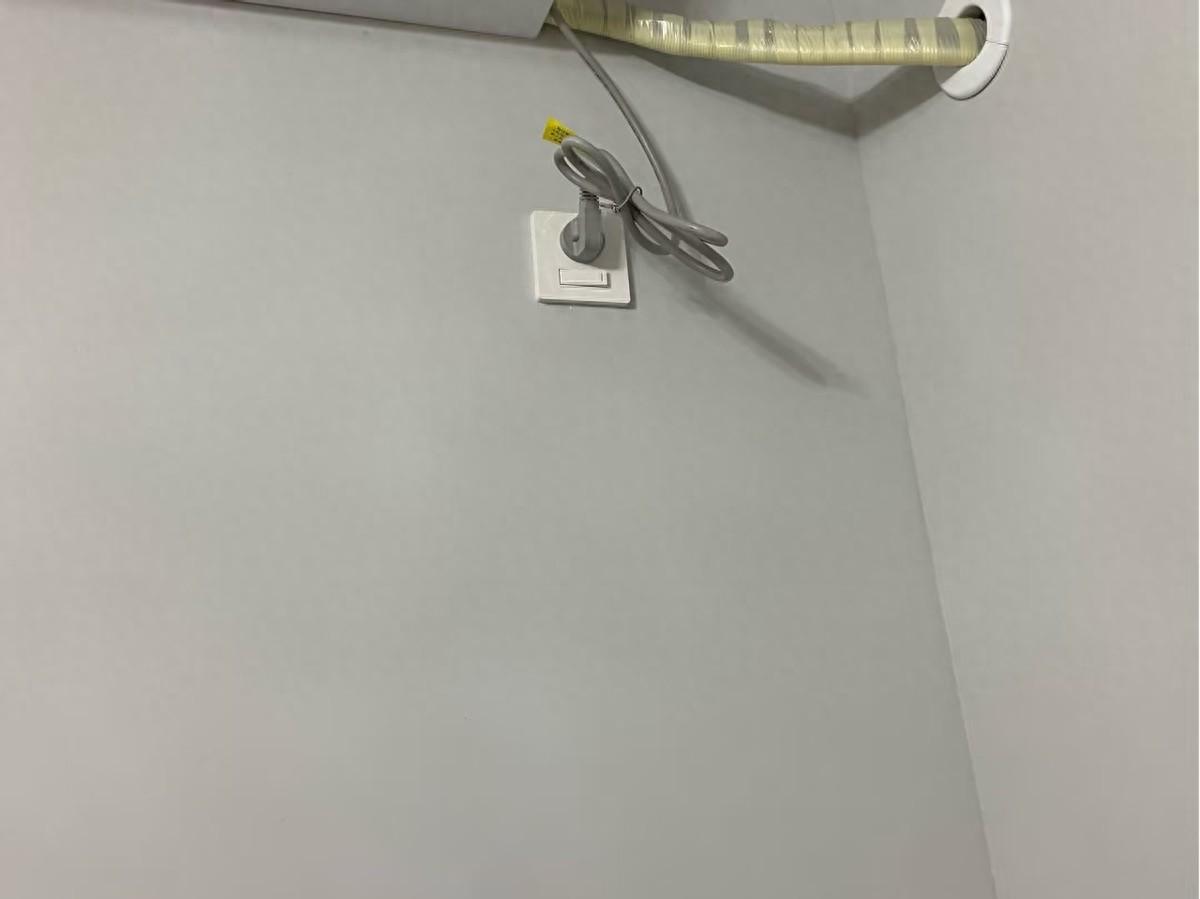 只見她把空調的電源線拿過來,順手往上一插就插進去了,電源線是從上面下來的。感覺用着非常順手,而且插上以後非常整齊。