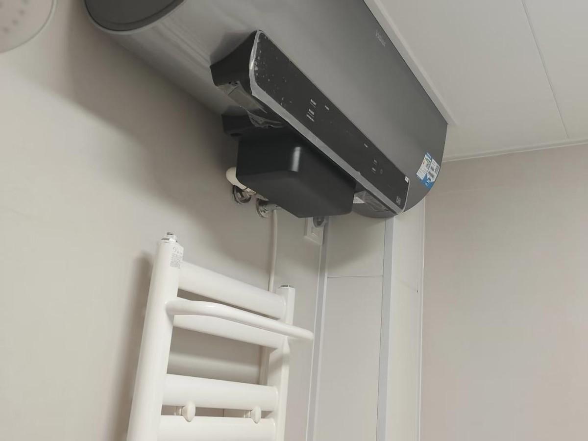 看完她家的洗衣機插座,我就去她家的熱水器的安裝位置看了看,發現熱水器也是倒着裝。