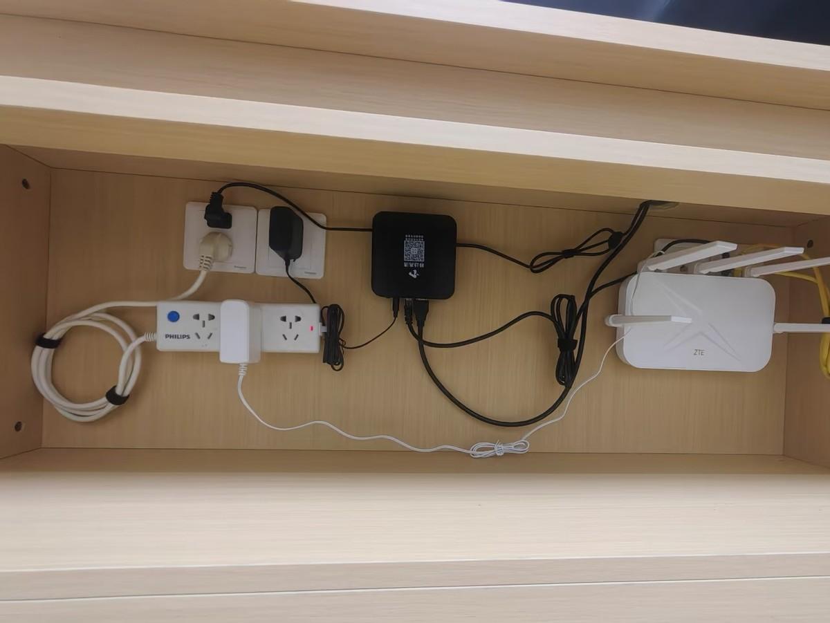 我就看見這個電線插進去以後,電線是往上走的,只露了一小段,剩下的都隱藏在櫃子裏。我還特意試了試,插拔也是非常方便的,沒有什麼卡澀,也很好用。
