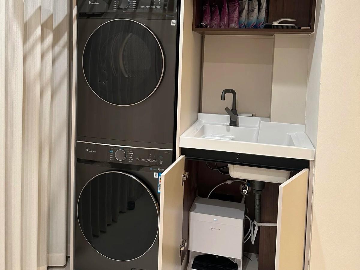 我越看越好奇,又發現她家櫃子內洗衣機插座也是倒着裝的。