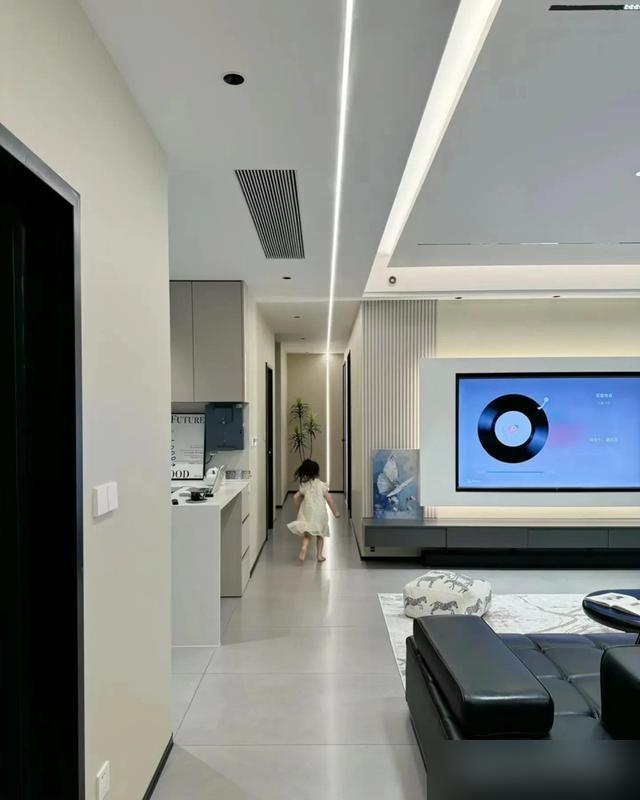 石膏板吊頂嵌燈帶,配上4000K色溫的射燈,像給房間蒙了層柔光濾鏡。