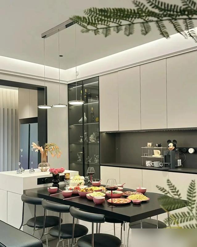 餐廳島臺加餐邊櫃的搭配堪稱收納教科書。