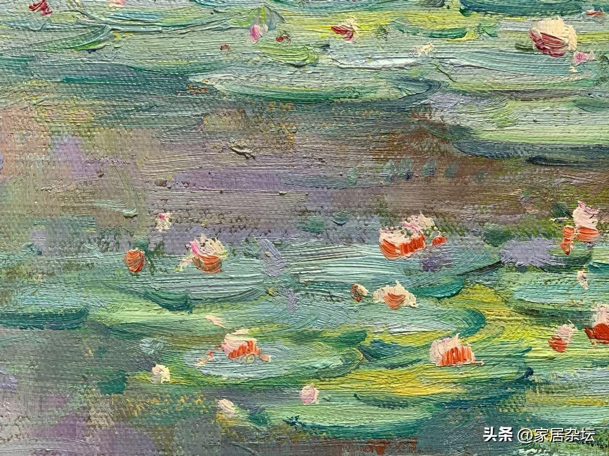 老婆閨蜜趕緊說:這是小區撿來的廢舊的畫框。我重新打磨打磨,然後又親自臨摹了一幅睡蓮的作品。真的沒想到,她的臨摹功底會如此之高。