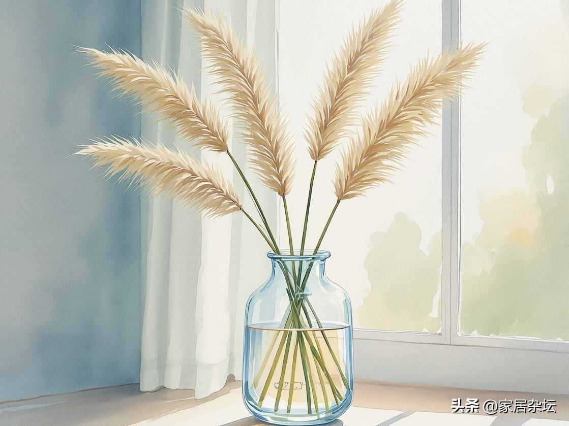 原來是一個幾塊錢的大號玻璃菜罈子。她把菜薹子撕掉標籤,徹底清洗乾淨,然後放入了清水,又插上了幾支路邊踩的蘆葦。真的,一個常見的廢品,被她瞬間變成了高格調的花瓶。