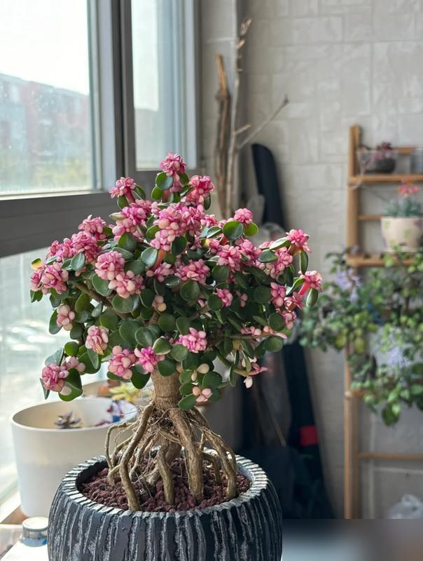 玉樹根淺"喫得少",小陶盆反而讓它憋出勁兒來,顆粒土摻煤渣纔是黃金搭檔。
