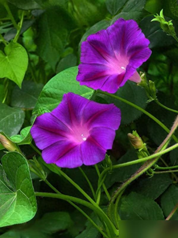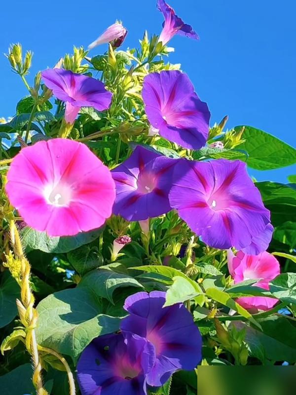 光照可不能虧待它,喇叭花性子向陽,半天曬到太陽的地方,藤蔓爬得密實,花也開得飽滿。