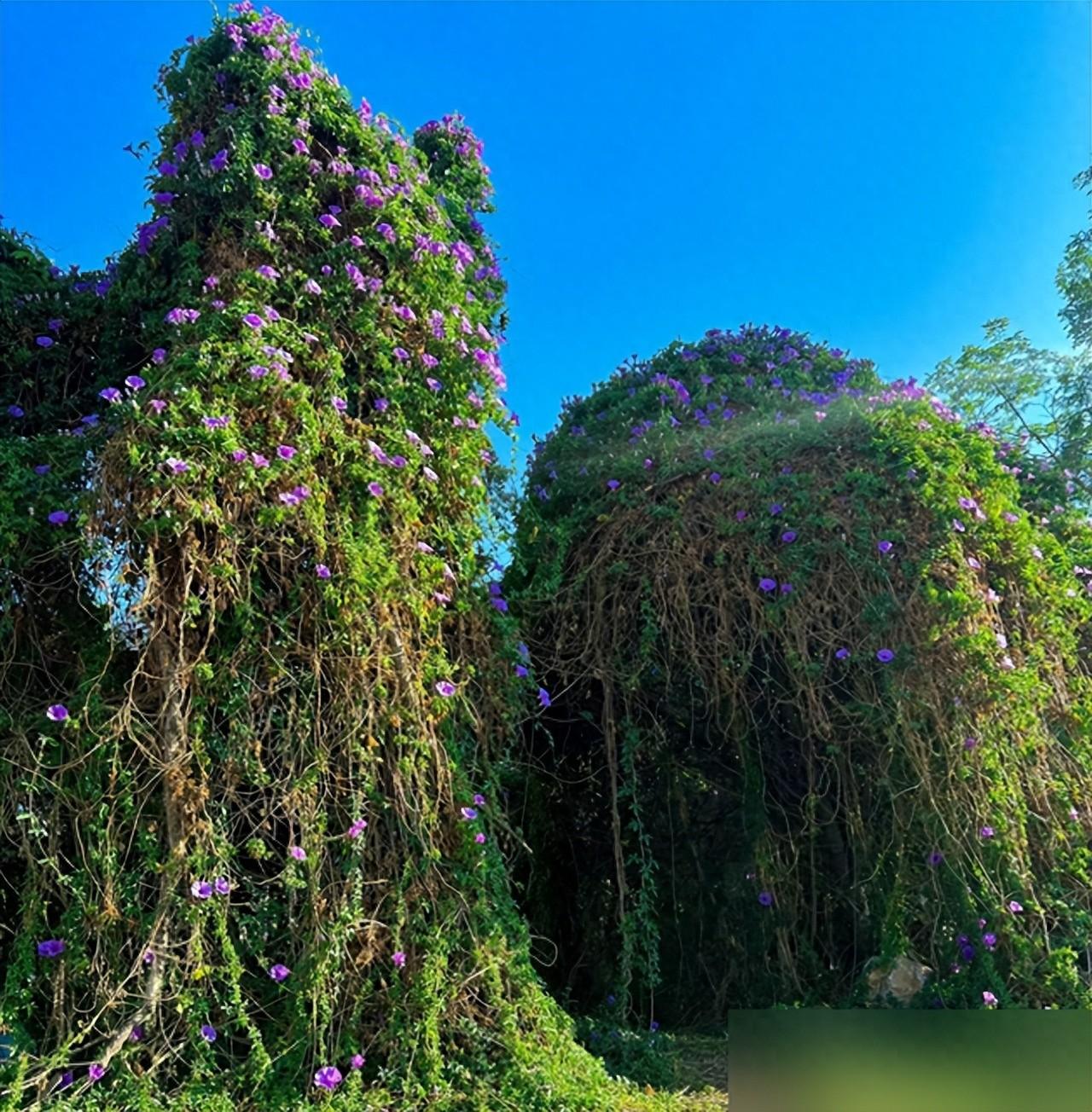 最近瞧見雲南停車場那片喇叭花,藍紫色花朵綴滿圍牆,像大自然隨手潑了桶顏料,硬是把鋼筋水泥染成了童話世界,忍不住感嘆——啥叫生命力?