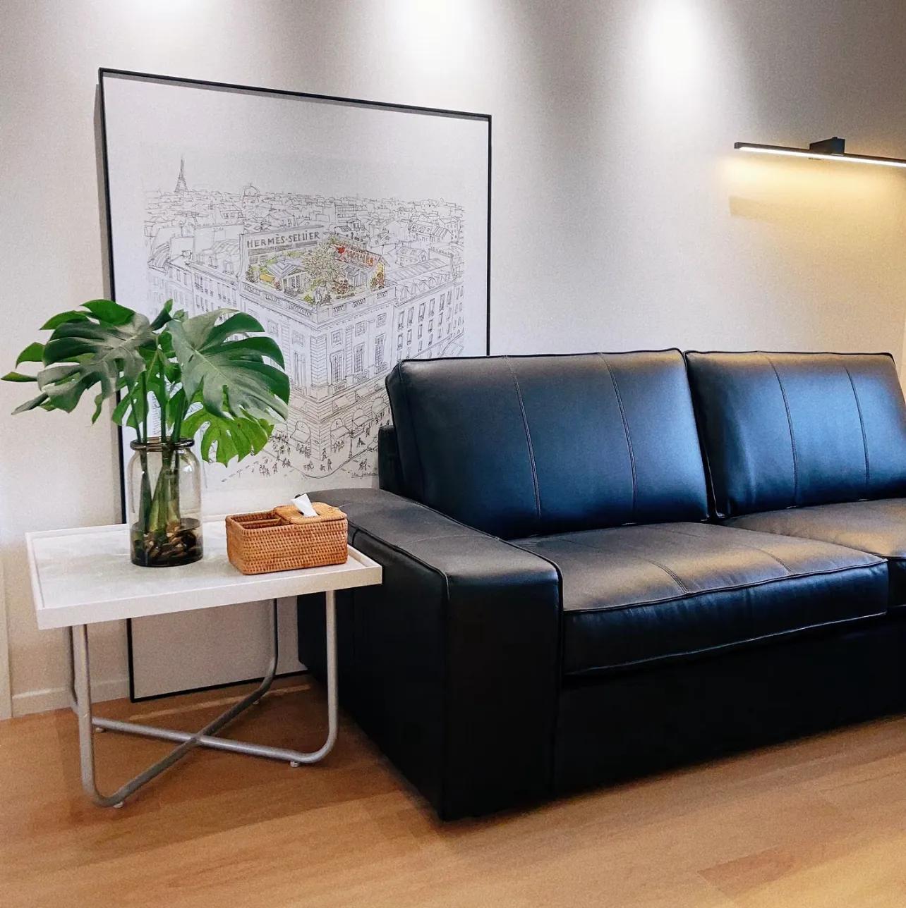 因爲這小茶几,也能滿足隨手置物的需求,還移動方便,來客人了,拉到中間去,客人走了放在角落了,客廳也顯得敞亮。