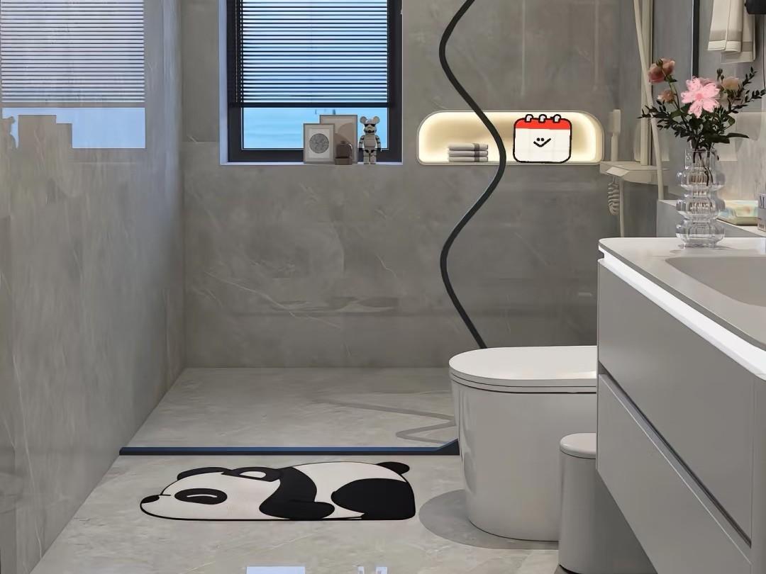 也不知道當初是抽了什麼風,衛生間非得堅持鋪柔光磚。柔光磚,我也承認真的很高級很好看。在乾淨的情況下,拍照片特別養眼。