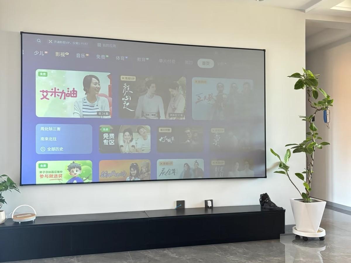 入住以後,我就發現這個投影只有關燈的情況下才清晰。白天即使拉着窗簾,也看着不是特別清晰,導致白天想看個電視,只能把窗簾全拉上。晚上看電視,也不能開燈,真的很彆扭。