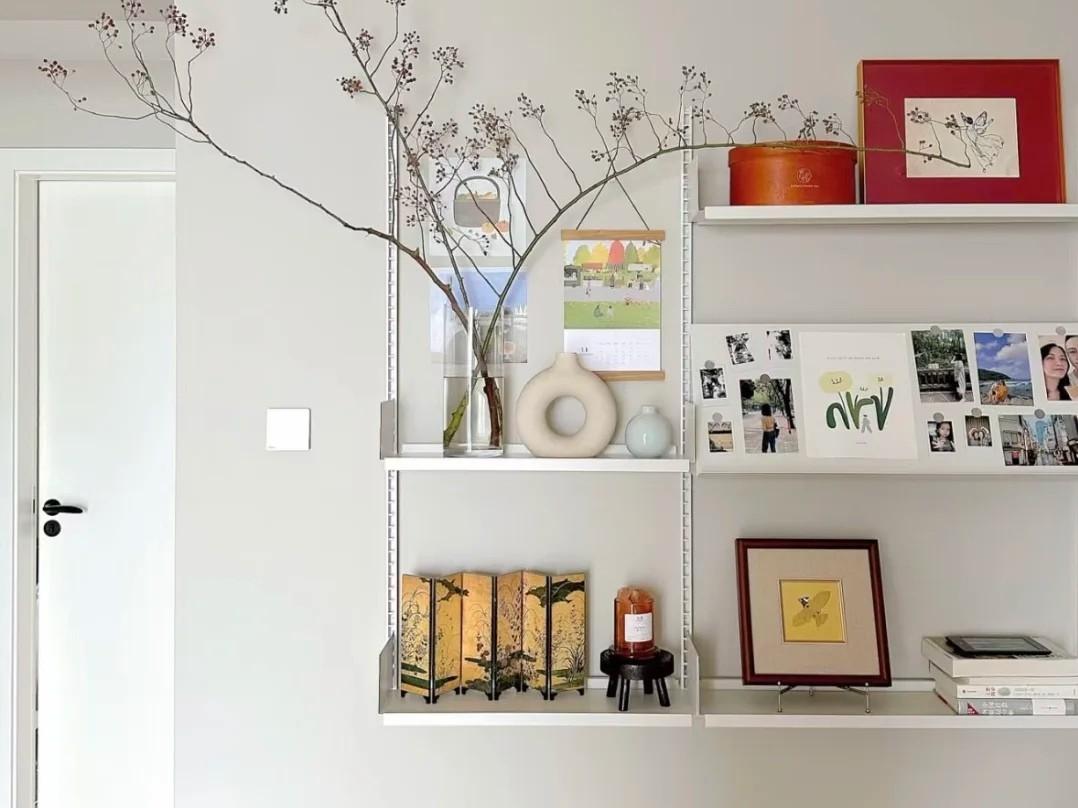 當初,也不知道怎麼想的,客廳非得放展示架。而且,這些展示架完全都是敞開的。剛裝修完,擺上一些擺件、飾品,的確很好看。