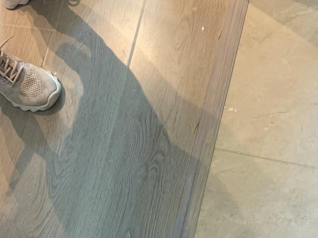 我家的臥室是鋪的木地板,客廳是鋪的瓷磚。臥室和客廳在門口的地方,出現了瓷磚和木地板的接茬,當時是鋪的過門條。