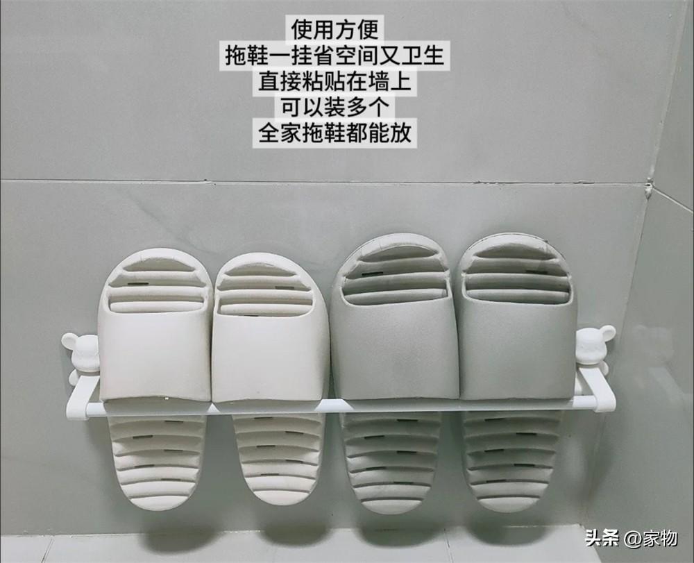 其實只需要在牆上貼一個瀝水掛杆,將拖鞋掛上去,就能同時起到瀝水和收納的雙重效果,再一看價格,還不到十塊,真實絕了!