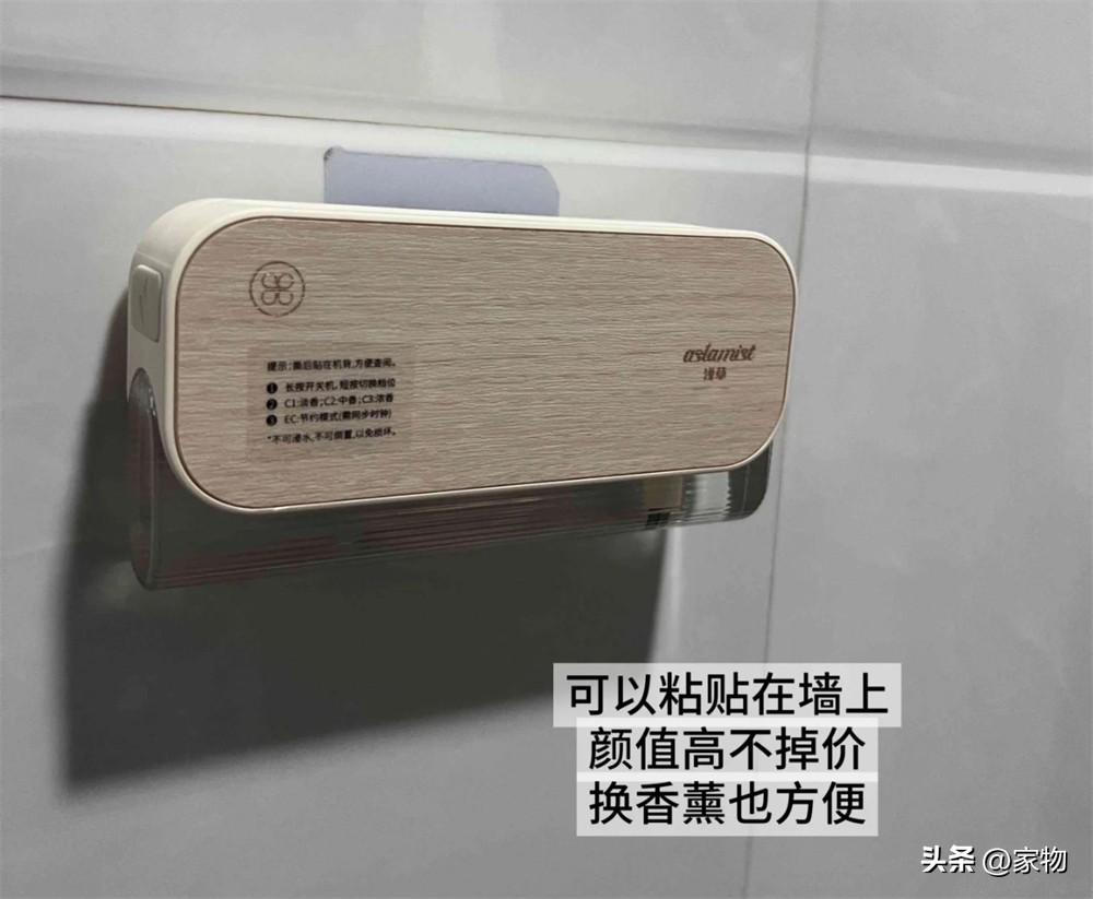 這看起來有些奇怪的小電器,其實是一臺人體感應香薰機,把它貼在衛生間、陽臺貓砂盆上方,人走近了就會緩緩釋放出香味,起到驅避異味的效果。