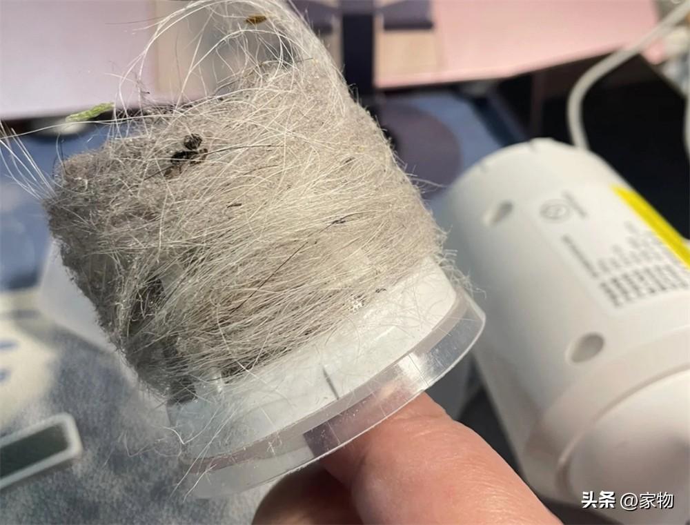 吸附上來的毛髮會纏繞在塵盒內,拔出來一揭一倒,丟掉就行,用起來真的非常順手。