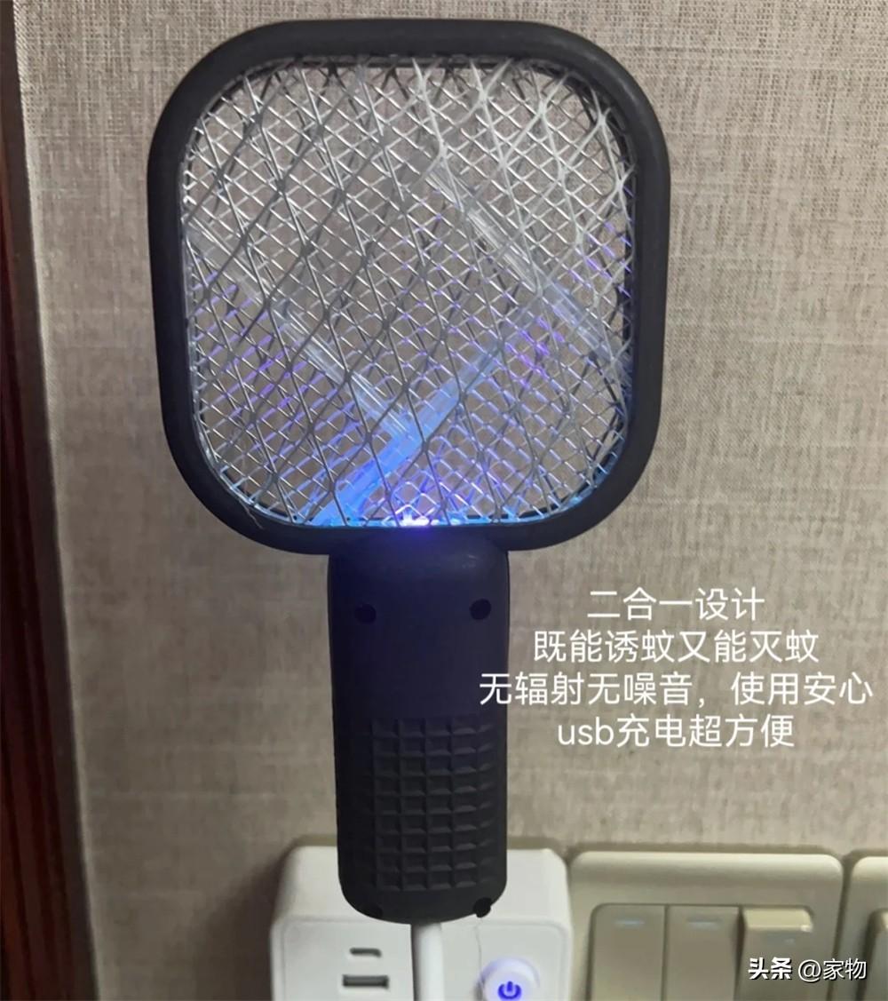 最後就是這個小巧的電蚊拍啦,比起很多電蚊拍來說更小,但卻多了個USB連接的功能,把它插在充電座上,可以任意調節角度,並開啓藍光誘蚊,即便不手動拍,也有蚊子自己撞上來,屋裏沒人的時候打開它,回來真能看到一兩隻電倒在地上的蚊子,滅蚊效果一流。