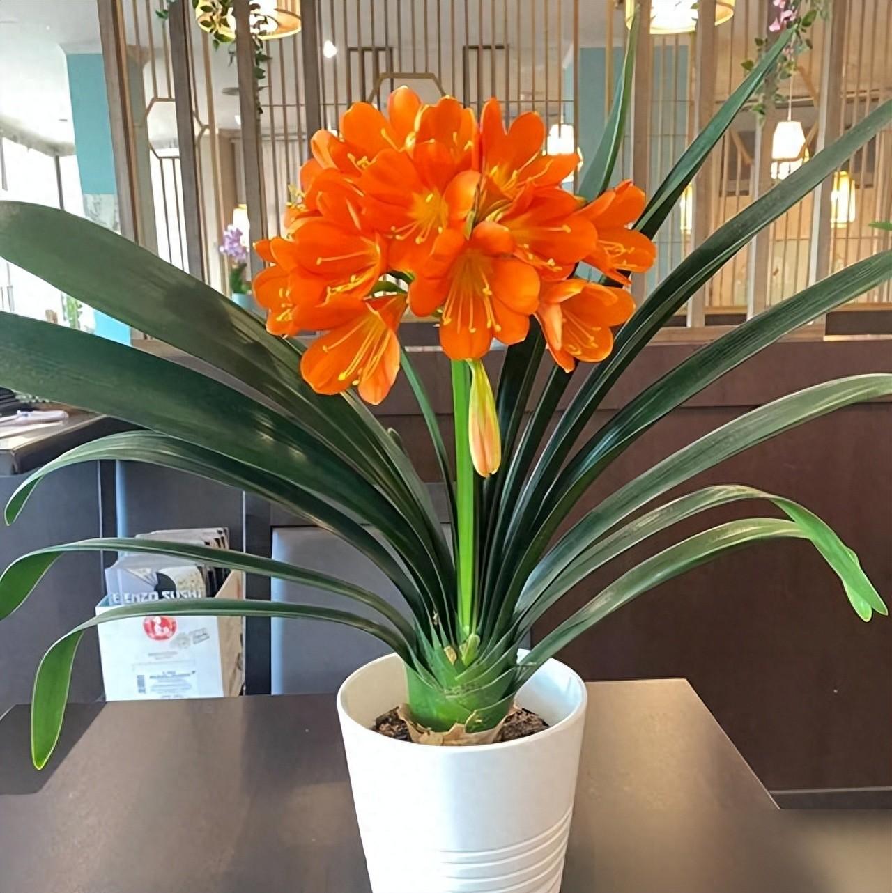瞧它那寬厚油亮的葉片,整整齊齊排成兩列,開花時節抽出花箭,橘紅花朵熱熱鬧鬧簇擁着,擺在客廳裏別提多提氣。