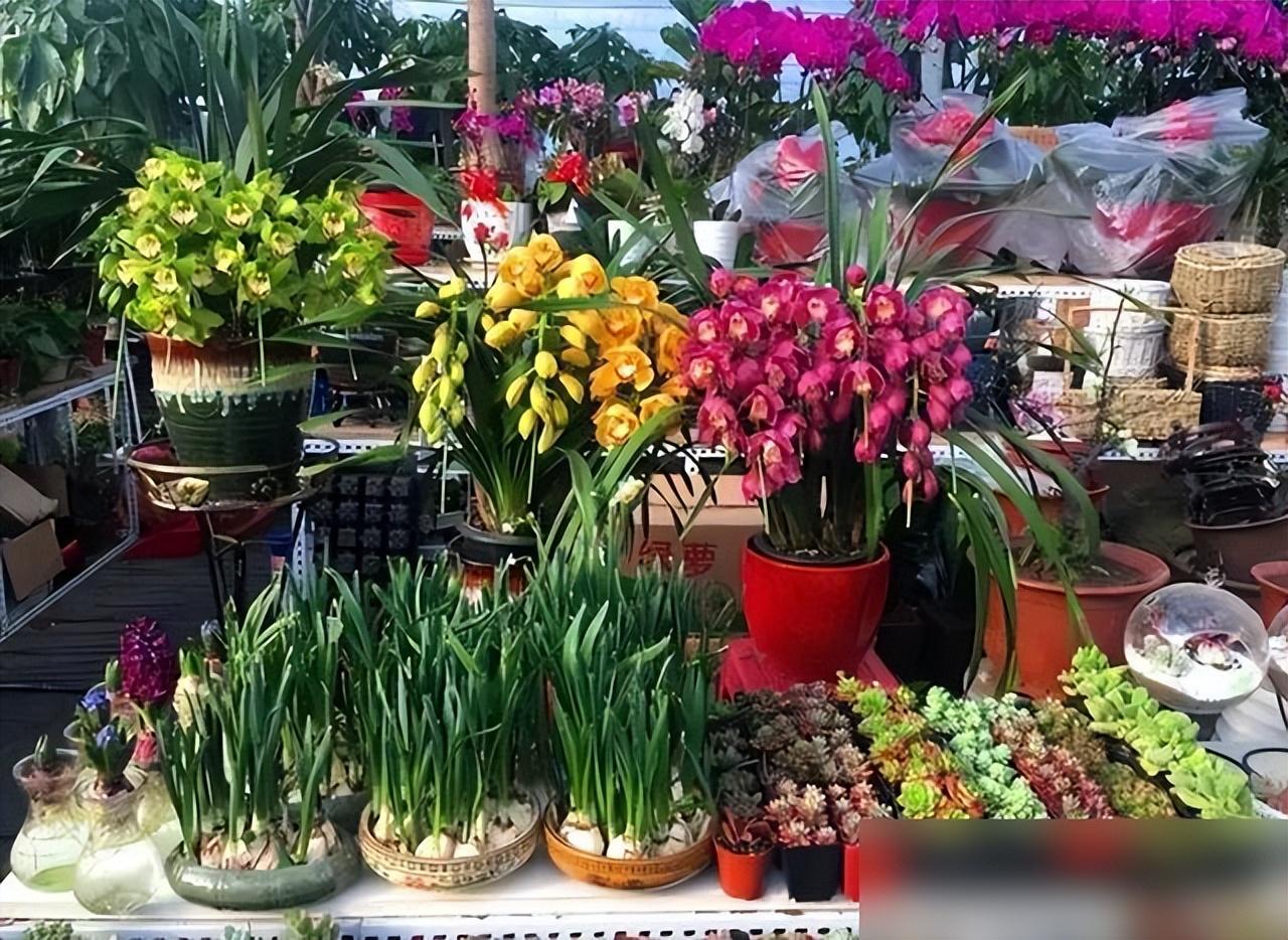 大夏天花市裏蟹爪蘭、長壽花開得火紅,冬天偏有茉莉梔子擺出來,看着喜慶吧?