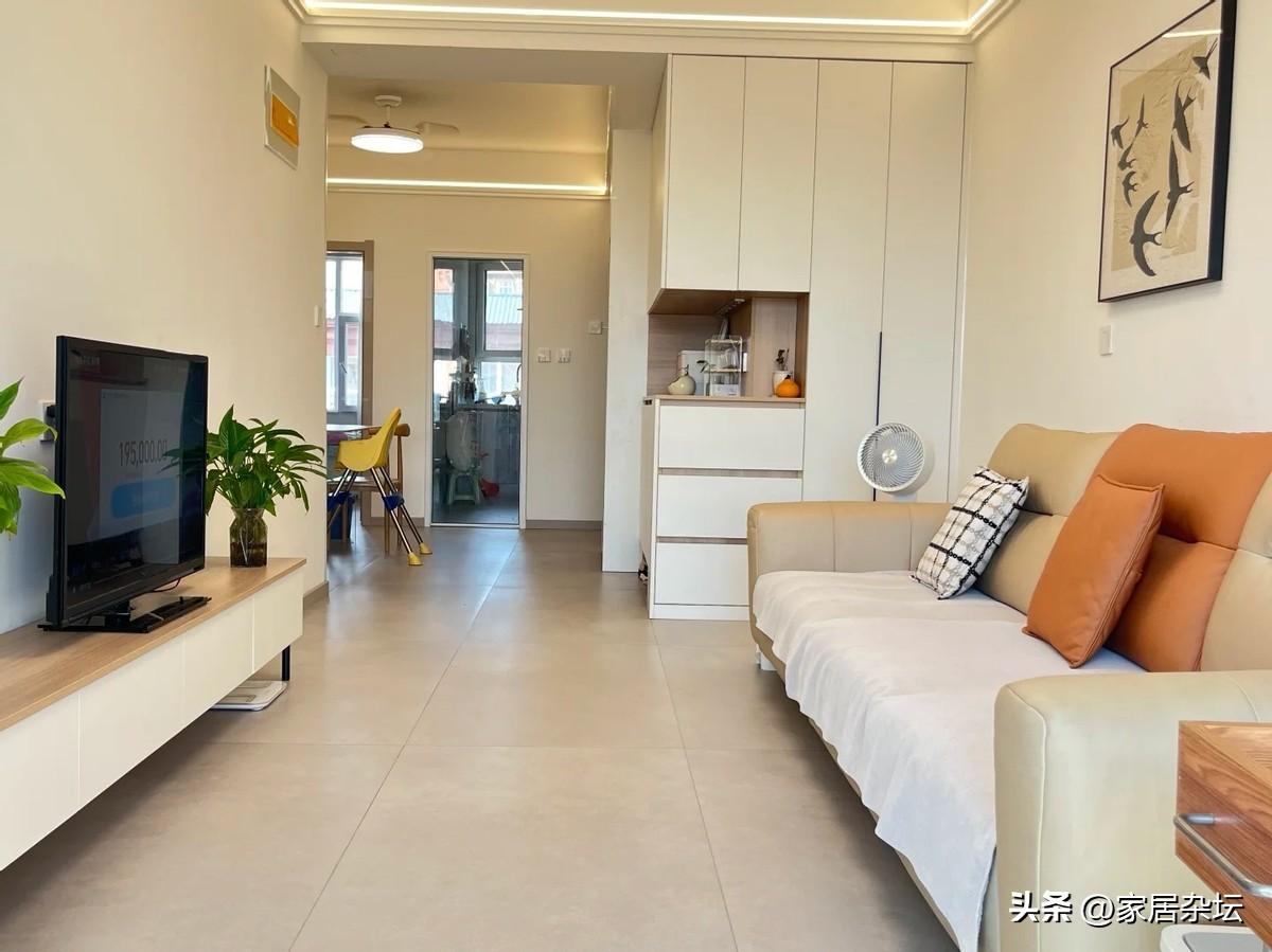 裝修客廳,建議大家嚴格評估自家客廳的尺寸。開間小於3.5米,儘量放棄滿牆櫃子。其實可以選擇成品,大小適中的電視櫃或者是邊櫃。牆面建議大家儘量留白,保持空間的呼吸感。收納要分散到各屋和陽臺。