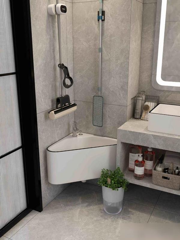 壁掛拖把池卡牆角,洗鞋拖地兩不誤,掛牆上瀝水滴水不漏,懸空設計零死角,小空間救星。