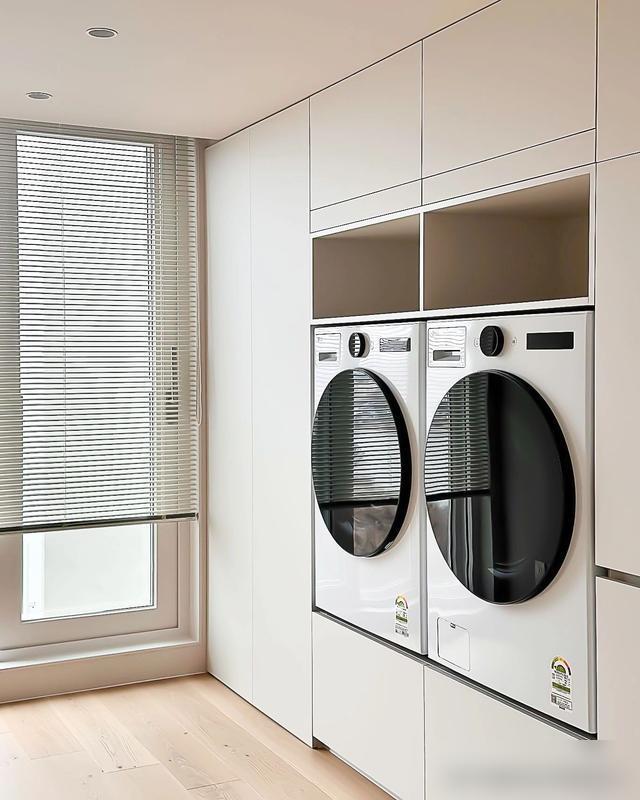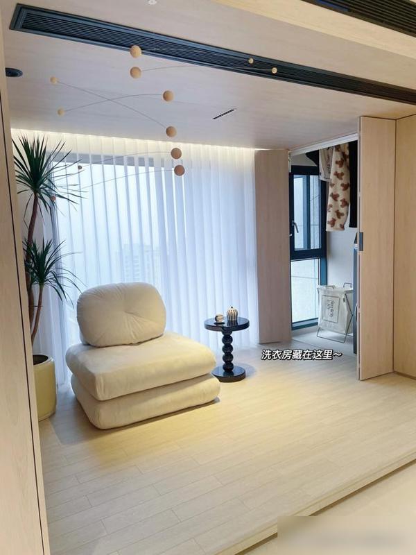 陽臺一平米洗衣房加摺疊門,關上就隱形,客廳清清爽爽,家務活藏得乾淨利落。