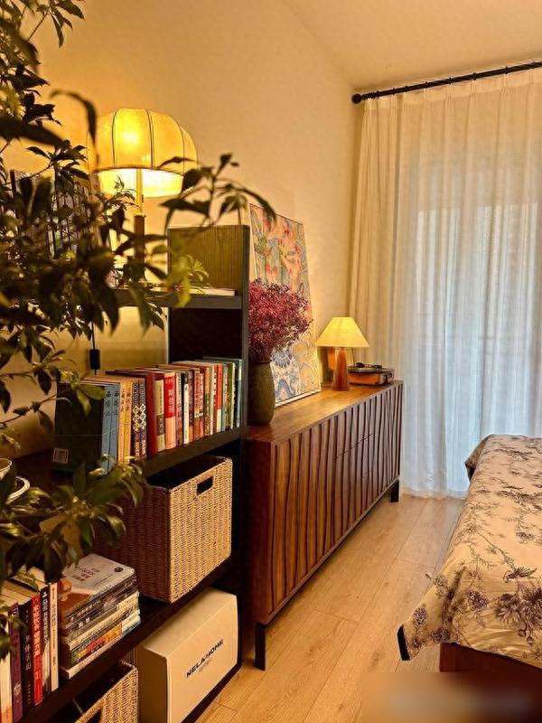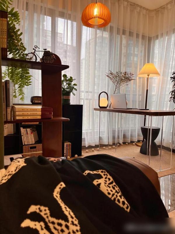 書架上的書真有翻動痕跡,落地燈彎着腰給搖椅留閱讀光。