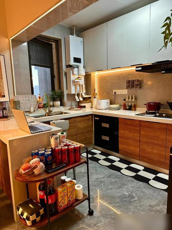 掛鉤排兵佈陣掛着鍋鏟,竈臺邊特意留出三十公分空檔——備好的菜碼在這兒,轉身下鍋不慌不忙。