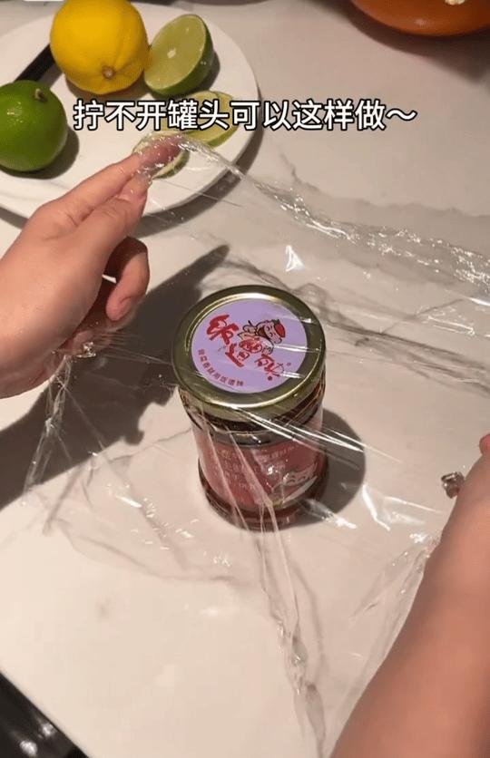 保鮮膜表面有輕微黏性,能緊密貼合手掌和瓶蓋,增加接觸面積,讓壓力分佈更均勻。