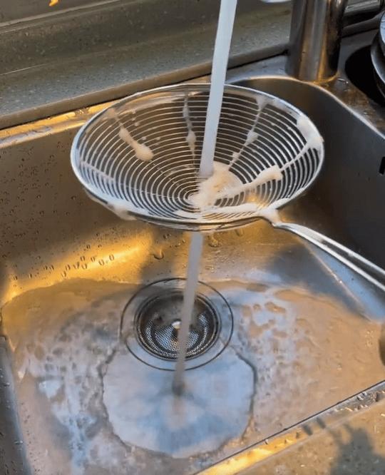 很多人都會直接在水龍頭下面衝,但暴力沖洗=給廚房播撒細菌種子!
