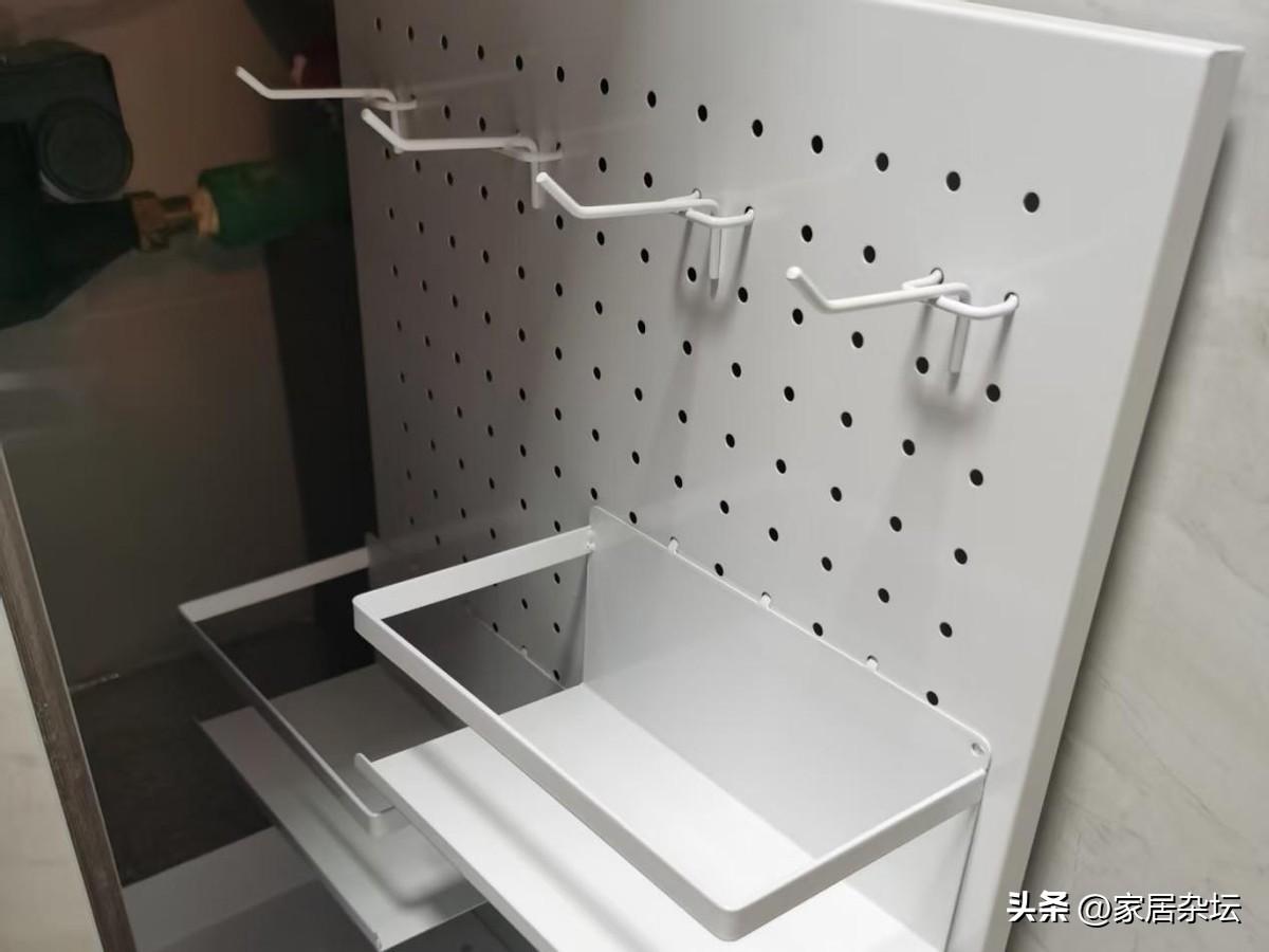 可能大多數人認爲水槽下面比較潮溼,陰冷,用處不大。我這次裝修,老婆堅持在水槽下面安裝插座和洞洞板。