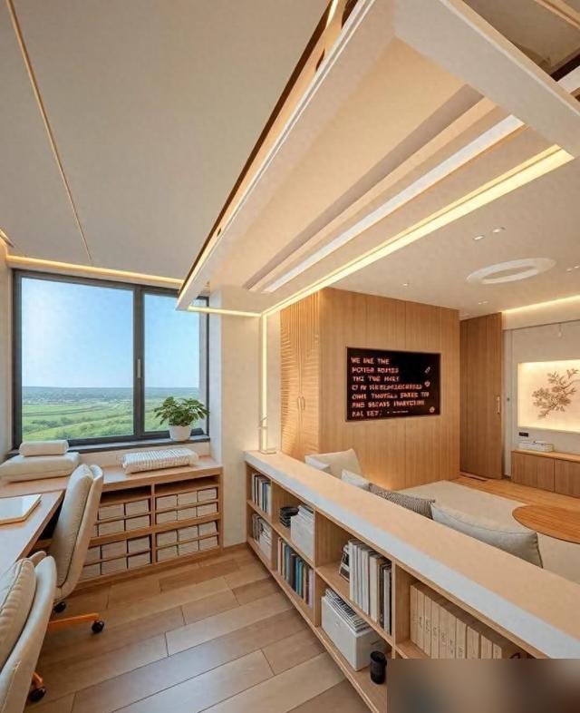 全屋無主燈設計,光線均勻不刺眼,看書辦公都舒服。