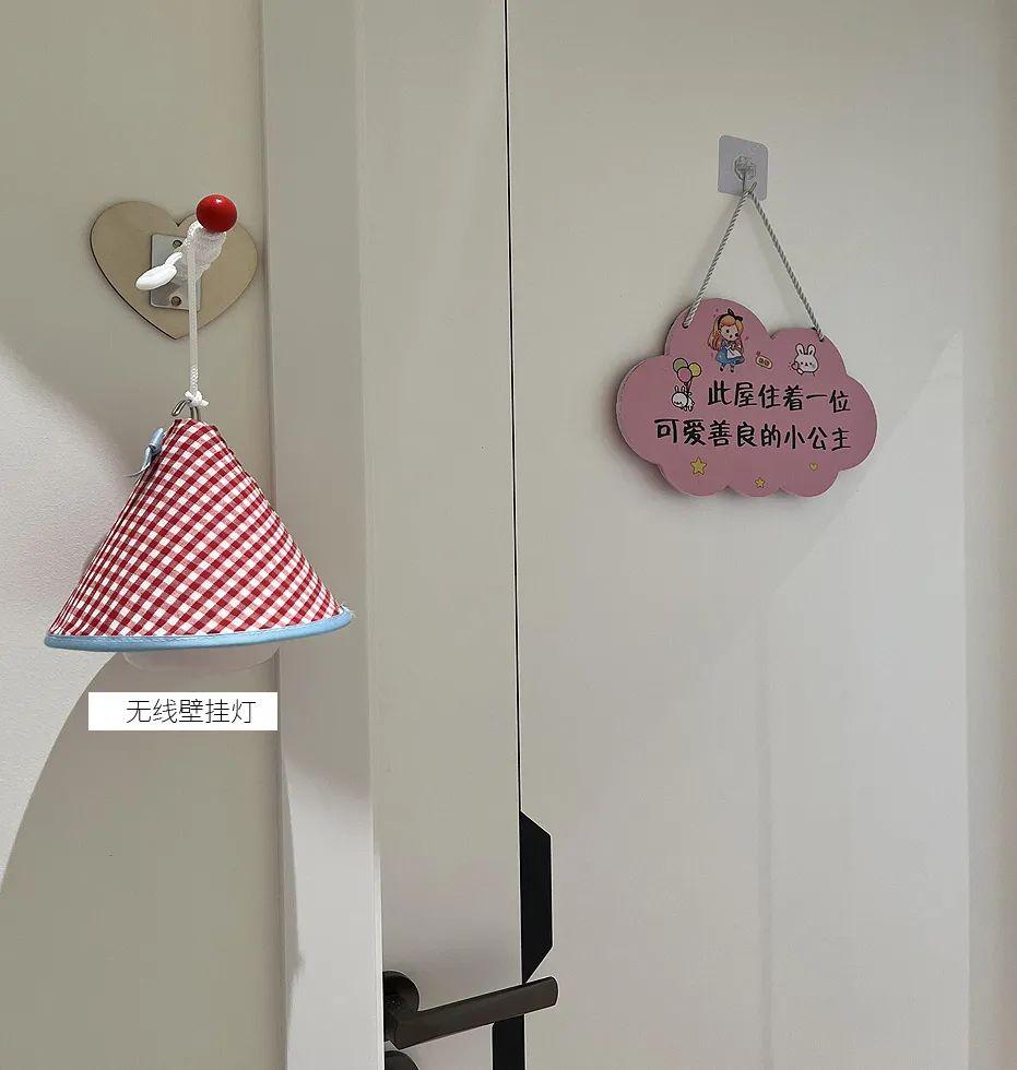 然後在臥室門的旁邊再安裝一個免佈線壁掛燈,一下子就有了點睛之筆,氛圍感絕了。