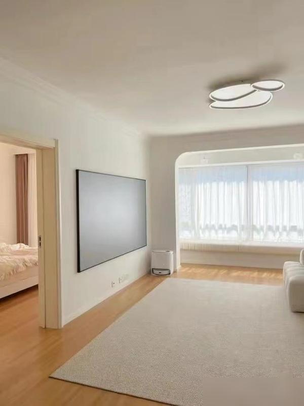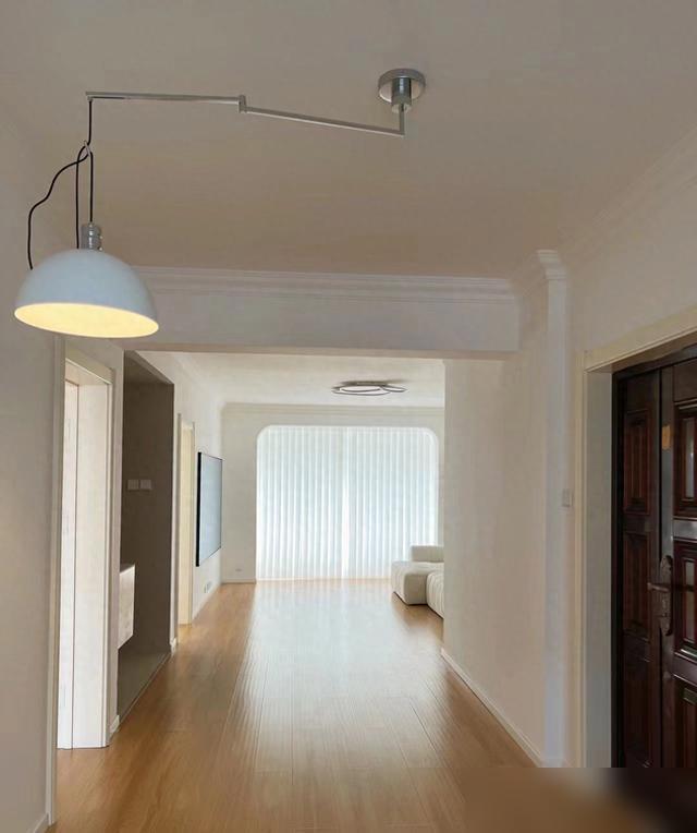 空間空落落的,反而顯大又透亮,陽光灑在木地板上暖烘烘的。
