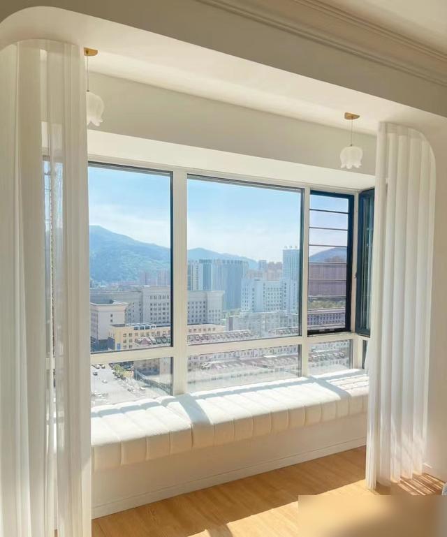 陽臺打通,飄窗鋪個白墊子,坐那兒喝茶看書,陽光成了最奢侈的裝飾。